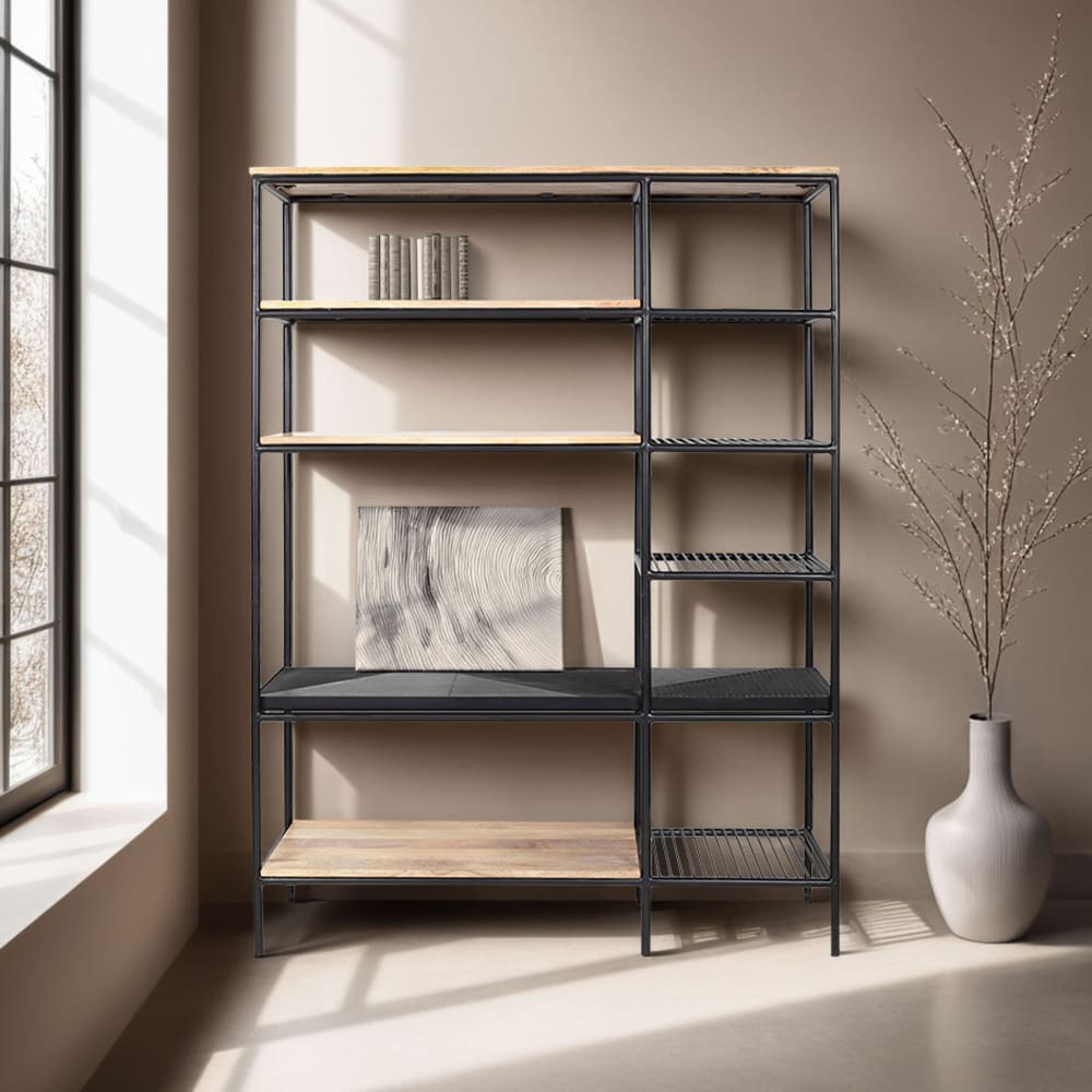 Träumen Sie von Platz, um Ihre Bücher zu verstauen? Das Bücherregal mit Drahtregalen PAHELI verspricht viel. Sie können 5 Regale haben, um Ihre Bücher auszurichten oder Ihre Lieblingsdekorationen auszustellen. Bestehend aus einem Metallrahmen mit schwarzer Epoxidbeschichtung, ist dieses Bücherregal ideal für ein Büro oder ein Wohnzimmer. Es ist 161 cm hoch, 109 cm breit und die Regale sind 40 cm tief. Ihr kleines Extra? Es vereint die funktionalen und ästhetischen Qualitäten, die man von solchen Möbeln erwartet. Sie werden die Kombination aus Marmor und naturfarbenem massivem Mangoholz lieben. Die Edelheit der Materialien macht es zu einem charaktervollen Stück und verleiht Ihrem Interieur einen schicken Touch. Es ist das Möbelstück, das Ihnen für eine optimierte Organisation Ihres Stauraums fehlte. Die Pflege ist einfach: Ein einfacher Wisch mit einem Tuch reicht aus, um es abzustauben. Das PAHELI-Bücherregal strahlt natürlichen Charme aus. Es ist ein großer Vorteil für die Dekoration Ihres gemütlichen Zuhauses! Verpassen Sie es nicht, Sie würden es bereuen!Gewicht des Bücherregals: 78 kg