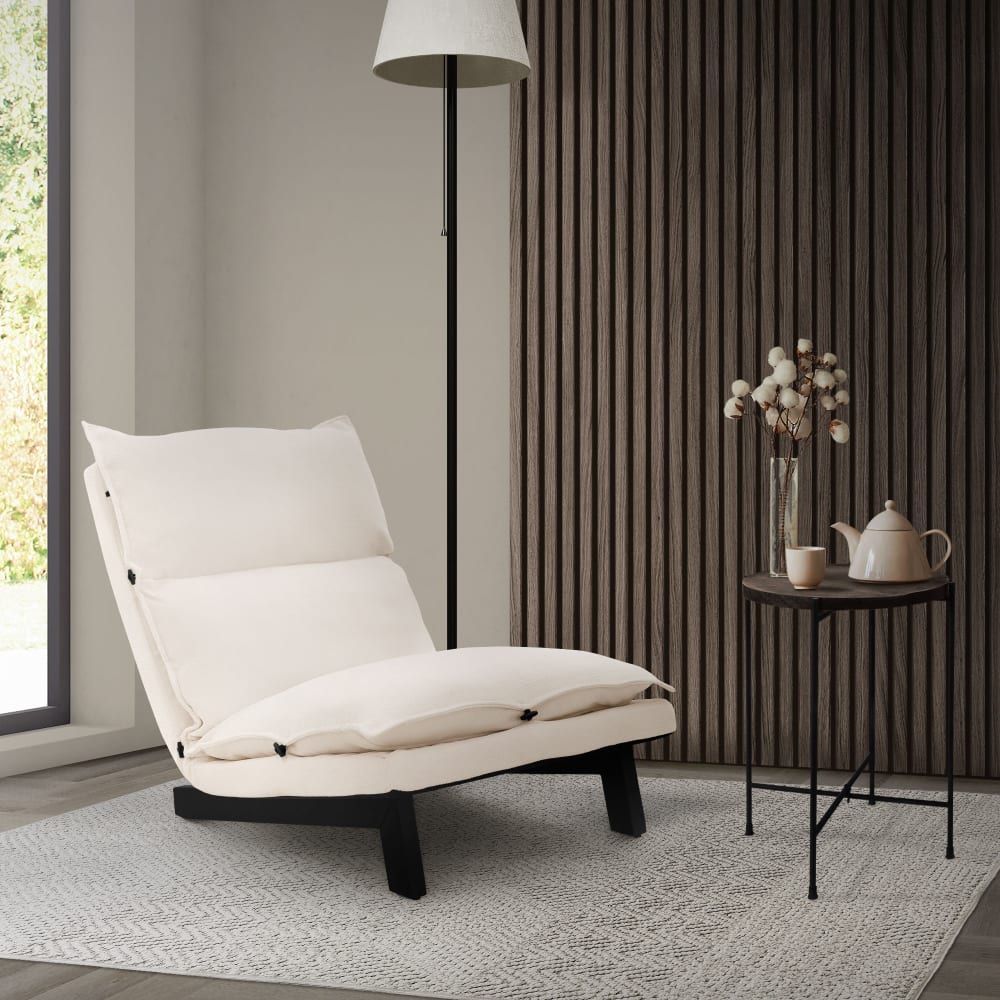 Der Bezug aus Leinen verleiht ihm eine natürliche, stilvolle Optik und sorgt in Kombination mit der weichen Polyesterpolsterung für ein angenehmes Sitzgefühl. Das pulverbeschichtete Stahlgestell bietet hohe Stabilität, während die Rückenlehne sich in fünf Stufen von 90° bis 180° verstellen lässt – ideal zum Sitzen, Zurücklehnen oder Entspannen.