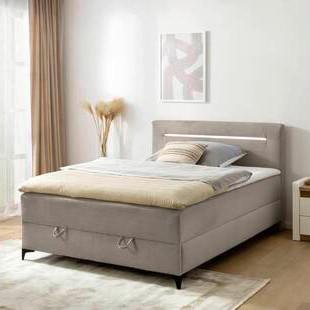 Gönnen Sie sich erholsame Nächte und gemütliches Design mit dem Boxbett JERRY in Braun. Auf einer komfortablen Liegefläche von ca. 120 x 200 cm genießen Sie entspannte Nächte, während der elegante Webstoffbezug in warmem Braun Ihrem Schlafzimmer eine behagliche, stilvolle Atmosphäre verleiht. Das gepolsterte Kopfteil mit LED-Beleuchtung lädt zum Anlehnen beim Lesen oder Entspannen ein und wird mit einer Höhe von ca. 109 cm zum wohnlichen Blickfang in Ihrem Zuhause. Schlafkomfort, den Sie jeden Morgen spüren: Die ca. 23 cm hohe Matratze mit Bonellfederkern im Härtegrad H2 + H2 (mittel) bietet Ihnen eine ausgewogene Unterstützung für erholsame Nächte, während der integrierte Topper mit ca. 5 cm Schaumstoffkern angenehme Druckentlastung schenkt. Dank des abnehmbaren Bezugs mit Reißverschluss bleibt Ihr Bett hygienisch frisch und kann bis 60 °C gewaschen werden – für ein sauberes und komfortables Liegegefühl. Die ca. 31 cm hohe Box ist ebenfalls mit dem hochwertigen Webstoff in Braun bezogen und steht stabil auf Winkelfüßen in Schwarz, die Ihrem Bett sicheren Halt geben. Bestellen Sie das Boxbett JERRY online und genießen Sie die perfekte Verbindung aus modernem Design, praktischem Komfort und gemütlichem Schlafgefühl auf 120 x 200 cm – für entspannte Nächte und stilvolle Wohlfühlmomente in Ihrem Zuhause.