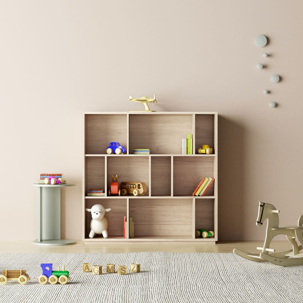 Regal mit geometrischem Design aus hochwertiger Melaminplatte, ideal um jedem Raum eine moderne Note zu verleihen. Die zahlreichen Fächer ermöglichen die Organisation von Büchern, Pflanzen, Spielzeug oder Kleidung und mehr. Erhältlich in verschiedenen Farben und an verschiedene Stilrichtungen anpassbar, können mehrere Module symmetrisch verwendet werden.Zertifikate : FSC, PEFC.Herstellung : Spanien.3 Höhenebenen.3 Fächer pro Ebene.Rückwand inklusive, um Flecken an der Wand zu vermeiden.Möbel wird als Bausatz mit Montageanleitung verkauft.Versand in 2 Paketen.Pflegehinweis :Reinigung mit trockenem oder leicht feuchtem Tuch unter Verwendung ausschließlich geeigneter Produkte für Holz (das Möbelstück zu nass machen oder mit einem tropfnassen Tuch reinigen kann es beschädigen und ist nicht durch die Garantie gedeckt).Gesamtmaße :Höhe : 117 cm.Breite : 119 cm.Tiefe : 32 cm.Gewicht : 43 kg.Spezifische Maße :Verfügbar auf den Produktbildern.