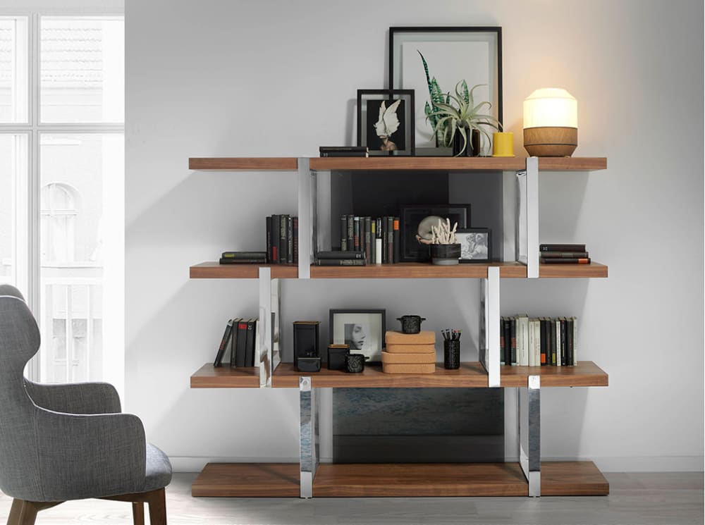 Ángel Cerdá ist eine Unternehmensgruppe mit Familientradition, die auf eine über 125-jährige Geschichte in vier Generationen in der Möbelbranche zurückblicken kann. Unsere Hauptaktivitäten sind die Herstellung, der Vertrieb und die Vermarktung aller Arten von Wohnmöbeln, Dekorationsartikeln, Holz und anderen Rohstoffen, die traditionell in der Industrie verwendet werden.Walnuss Bücherregal schwarz Glas Trennwände Modell 3136 Angel Cerdá S.L. Modernes Designregal mit 0,5 mm dicken MDF-Regalen aus Naturnussfurnier und einem Rahmen aus verchromtem Stahl mit 22 Mikron. Die ursprüngliche Note wird durch die Details und schwarzen durchscheinenden Glastrennwände übertragen, die diesem Bücherregal ein sehr elegantes Design verleihen, das perfekt ist, um die Wärme und Raffinesse, die Sie suchen, in Ihr Zuhause zu bringen und gleichzeitig alles in Ordnung zu halten. STIL: Dieses originale Bücherregal in modernem Design bietet die unterschiedliche und elegante Note, die Sie in Ihrem Zuhause suchen, und entspricht dabei den neuesten Dekorationstrends. VIELSEITIG: Das vielseitige und funktionale Design ermöglicht die Anpassung an jede Art von Wohnzimmer, Esszimmer, Lesebereich oder Büro. QUALITÄT: Alle unsere Bücherregal sind aus Materialien höchster Qualität gefertigt und garantieren langlebige und funktionale Möbel. DEKORATION UND KOMFORT: Aufgrund des linearen und minimalistischen Designs sowie der Struktur aus verchromtem Stahl in Kombination mit Walnuss und schwarz getöntem Glas erhalten Sie die unverwechselbare und unterschiedliche Note, die Sie für Ihr Esszimmer suchen. ABMESSUNGEN: Sowohl für seine Größe als auch für seinen großen offenen Stauraum ist es ideal, dass Sie alles in Ordnung und an seinem Platz halten.