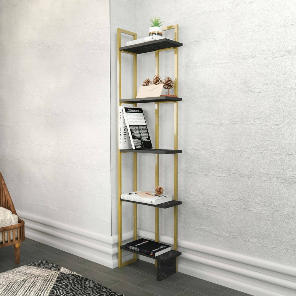 Bücherregal Holzeffekt schwarzes gold 45×22 cm von Dmora