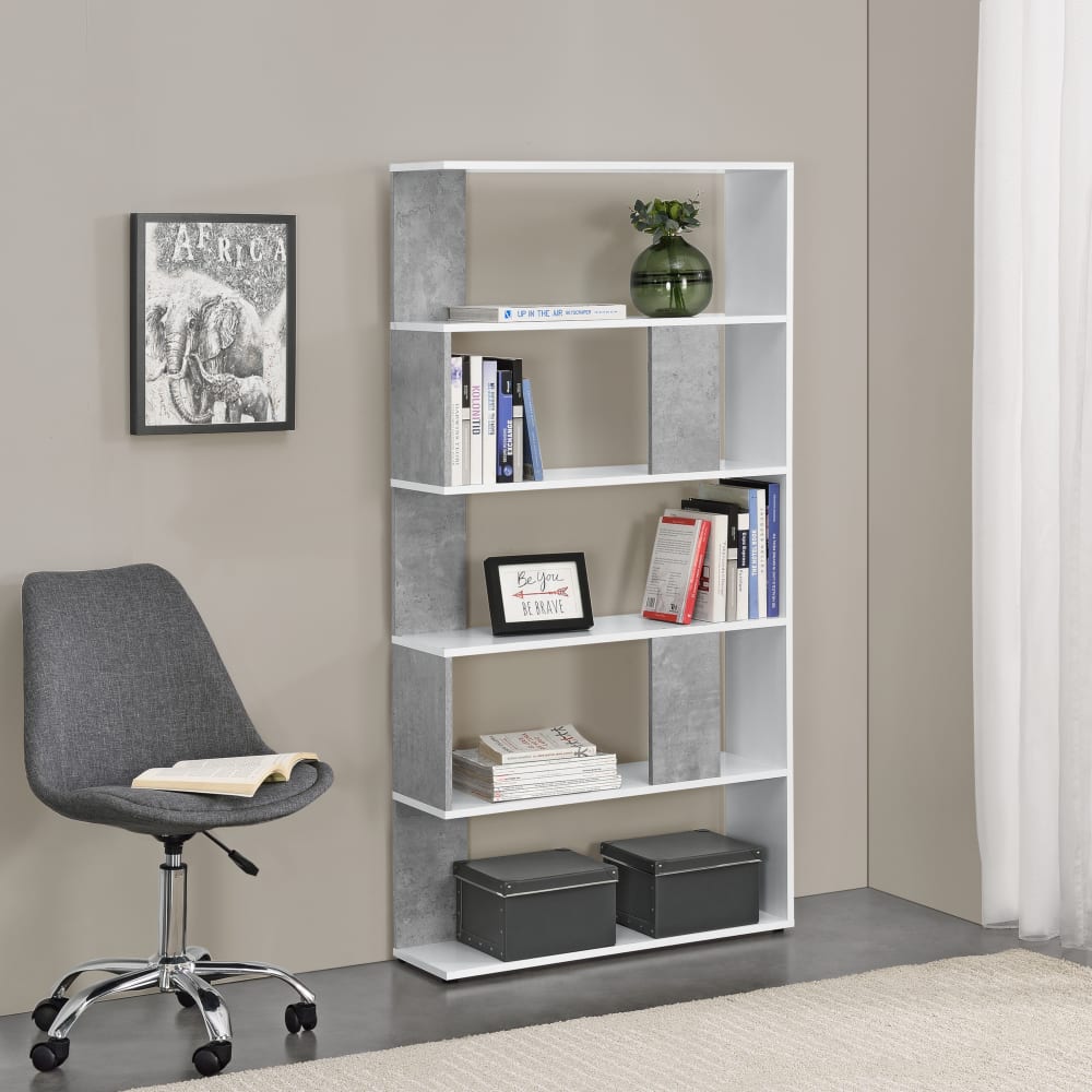 Bücherregal in Holzoptik 159 x 80 x 23.5 cm, in Betonoptik von en casa