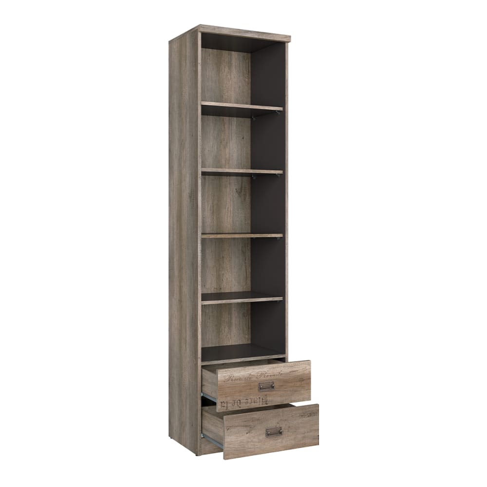 Bücherregal mit 2 Schubladen, Holzoptik und Grau, 205cm von Petits meubles