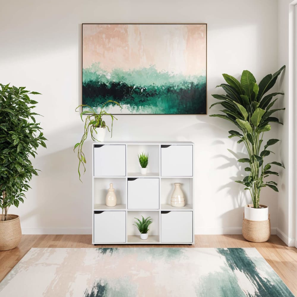 – KOMPAKTER QUADRATISCHER BÜCHERSCHRANK: Ein kompakter quadratischer Bücherschrank mit elegantem Design, ideal für Zuhause oder Büro. Ausgestattet mit 3 Regalen und 9 Fächern, ist es ein geräumiges und stabiles Regal für die Organisation von Büchern, Dokumenten oder kleinen Pflanzen.