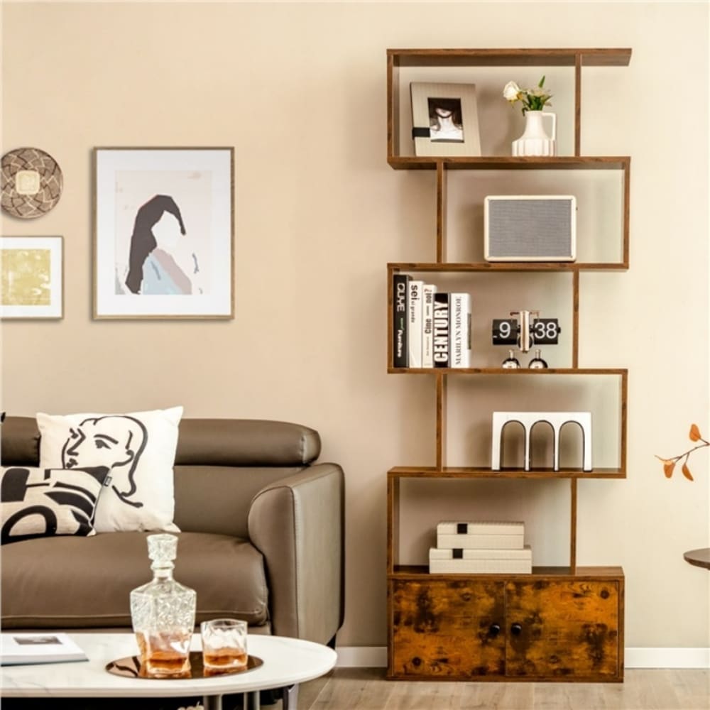 Geräumiger Stauraum: Dieses 5-stöckige Bücherregal in S-Form ist mit 5 S-förmigen Ablagefächern und einem Schrank mit Türen ausgestattet und bietet eine große Lagerkapazität. Daher bietet es eine perfekte Aufbewahrungslösung für Ihre täglichen Gegenstände, einschließlich Bücher, Vasen, Kunstwerke usw. Und das geometrische Bücherregal mit 5 Ebenen macht Ihr Zimmer aufgeräumt und ordentlich.