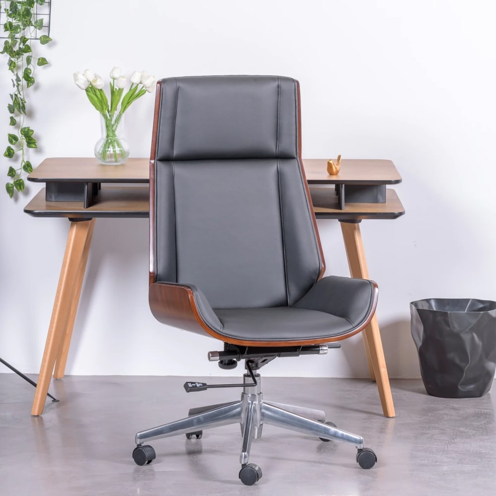 Bürostuhl aus Walnussholz und mit Kunstleder, schwarz von Nest dream