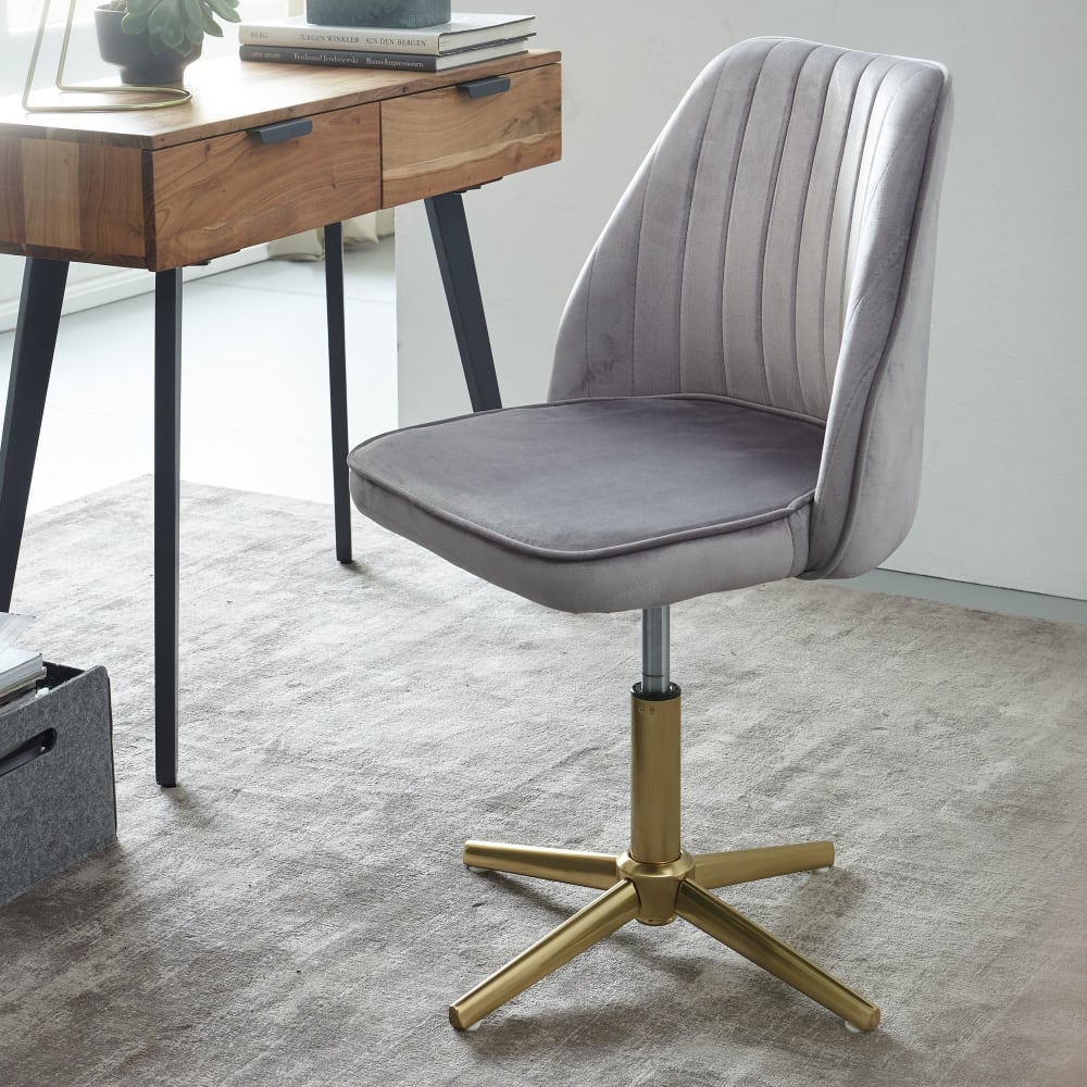 Bürostuhl höhenverstellbar aus Samtstoff, Grau von FineBuy