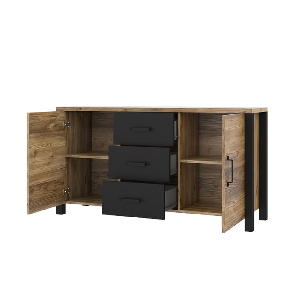 Buffet mit 3 Schubladen und 2 Türen, Holzoptik und Schwarz, 147cm von Petits meubles
