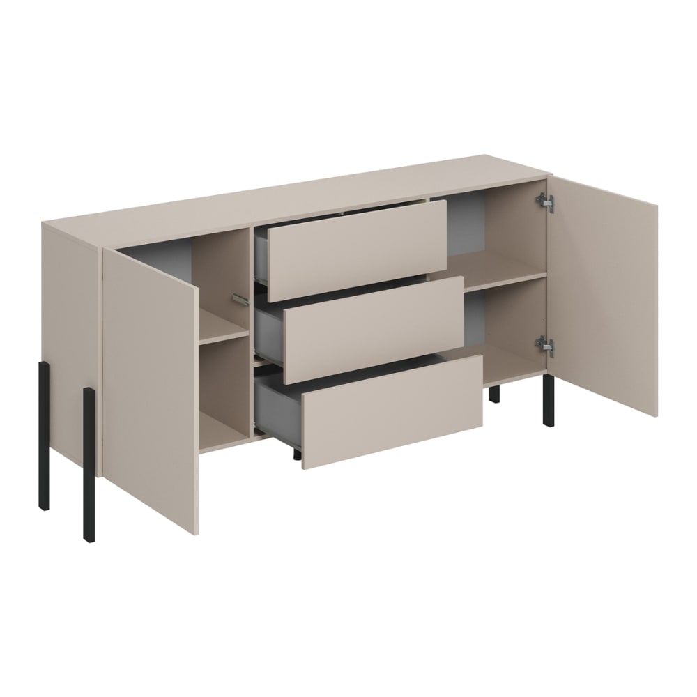 Buffet mit 3 Schubladen und 2 Türen, Kaschmir und Schwarz, 184cm von Petits meubles