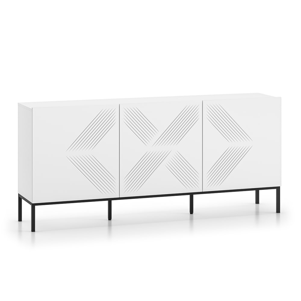3-türiges Sideboard Aura WeißKollektion :: Aura Material: MDF-FrontplatteKorpus MelaminplattenMelaminplattenGute Kratzfestigkeit, Feuchtigkeits- und Temperaturbeständigkeit Farben: Weiß mattFüße Schwarz matt Eigenschaften: 3 Türen3 EinlegebödenTüren mit geräuschlosem Schließsystem Gewicht : 46 kg Größe: 170 x 37 x 77 cm Verpackung : Produkt wird zur Montage geliefert, inklusive Anleitung. Produkt mit 24-monatiger Garantie. Gesamtanzahl der Kartons : 3 Gewicht und Abmessungen der Kartons: 16,5 kg63 x 81 x 7,5 cm / 27 kg40 x 182 x 8 cm / 2,5 kg20,5 x 170,5 x 2,5 cm Gesetzlicher Vertreter: NAPKINS, 30-34 avenue Henri Matisse, 06200 Nizza, FRANKREICH