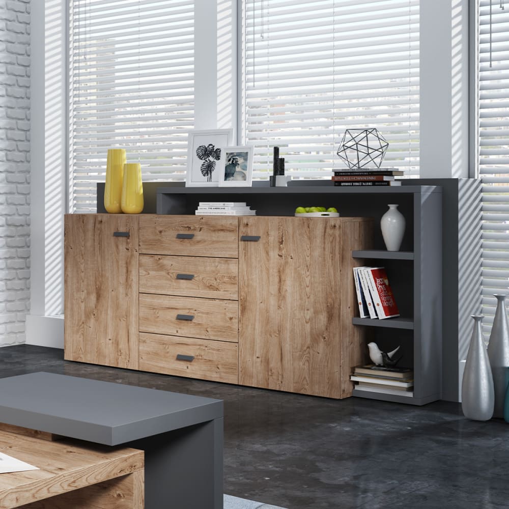 Buffet mit 4 Schubladen und 2 Türen, Holzoptik und Grau, 180cm von Petits meubles