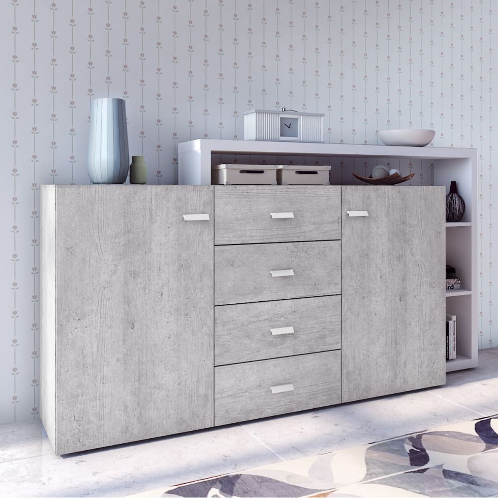 Buffet mit 4 Schubladen und 2 Türen, Weiß und Beton, 180cm von Petits meubles