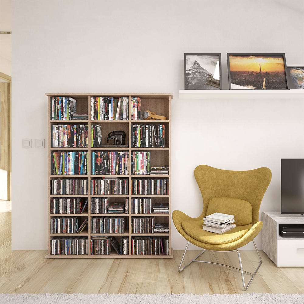 Bewahr deine geliebte Musiksammlung in diesem funktionellen CD Regal auf! Das Jukebox-Design mit 21 offenen Regalen bietet ausreichend Platz für DVDs, Blu-rays und CDs. Vollständig höhenverstellbare Fachböden ermöglichen es dir, deine Sammlung ganz nach deinen Bedürfnissen zu organisieren. Das Regal kann an der Wand montiert werden und passt perfekt in jedes Ambiente. Noch besser, dieses Modell ist Teil einer Jukebox-Serie und bietet dir noch mehr Optionen, um deine Musiksammlung stilvoll zu präsentieren! Egal, ob du ein Musikliebhaber bist oder einfach nur nach einer praktischen und dekorativen Aufbewahrungslösung suchst – dieses CD Regal ist die perfekte Wahl!—Technische Details:Farbe:SonomaAbmessungen:105 x 136 x 19 cm (BxHxT)Material:Spanplatte, 16 mmOberfläche:MelaminharzbeschichtungGewicht brutto:29.8 kgArtikelgewicht inkl. Verpackung:29.1 kg.Artikelgewicht:28.11 kg.—LIEFERUMFANG: CD Regal, Montageanleitung, Montagematerial
