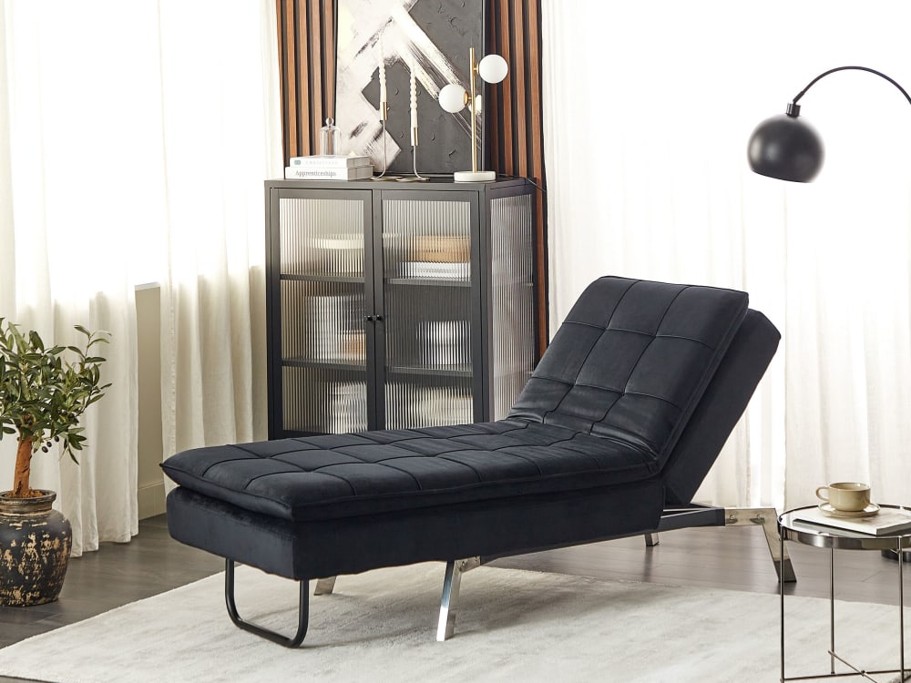 Chaiselongue aus Samtstoff, schwarz von Beliani