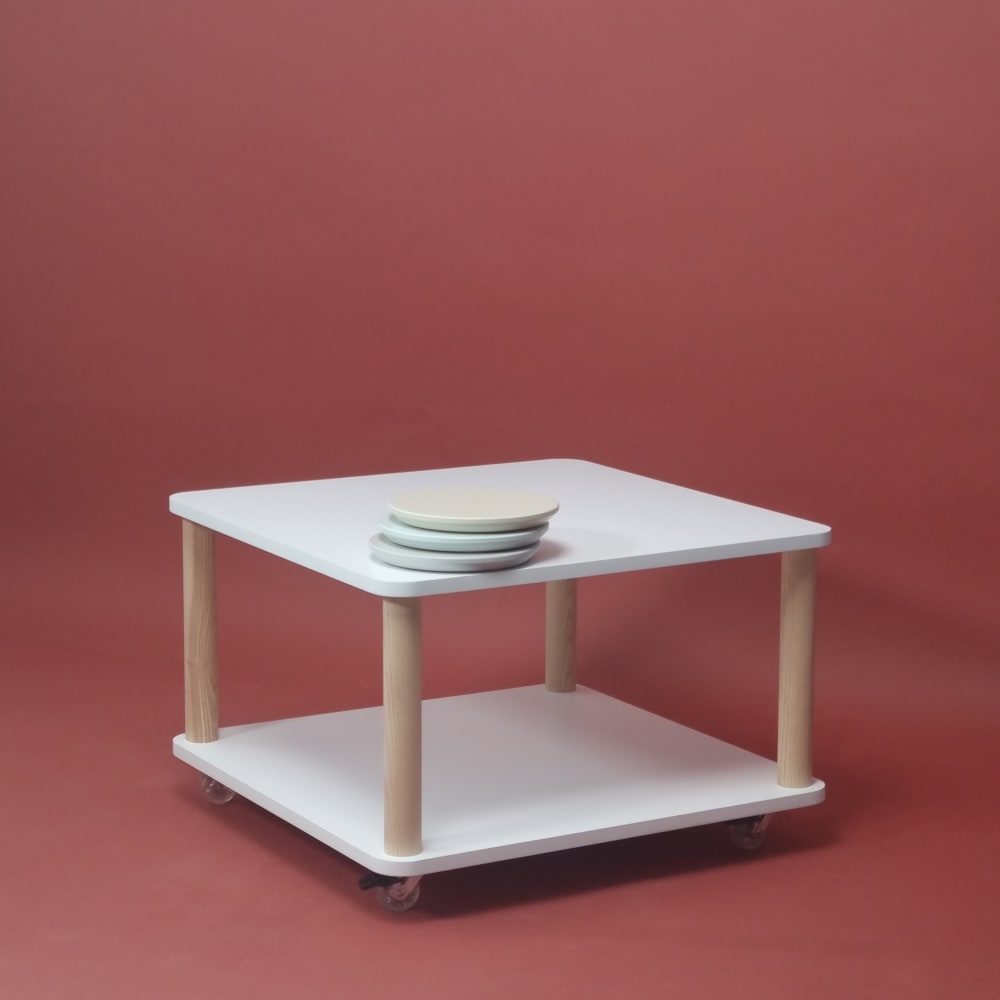 Der Ashme Couchtisch ist ein Design-Couchtisch auf Rollen, der Ihnen die Freiheit gibt, ihn nach Belieben zu bewegen. Dieser rollbare Couchtisch ermöglicht es Ihnen, Ihr Interieur flexibel zu gestalten und jederzeit nach Ihren Bedürfnissen anzupassen. Besonders praktisch ist dies bei der Verwendung eines Schlafsofas, um Ihren Alltag komfortabler zu gestalten. Das integrierte Space-Regal macht diesen niedrigen Couchtisch zusätzlich zu einem funktionalen Aufbewahrungsmöbel. Die abgerundeten Kanten des quadratischen Couchtisches sorgen für mehr Sicherheit, indem sie Verletzungen verhindern und eine angenehmere Nutzung gewährleisten. Abgerundete Formen werden bevorzugt, da scharfe Kanten Unbehagen verursachen können und für das menschliche Gehirn ermüdend sein können. Mit dem Ashme Couchtisch vereinen Sie Design, Funktionalität und Sicherheit in einem Möbelstück