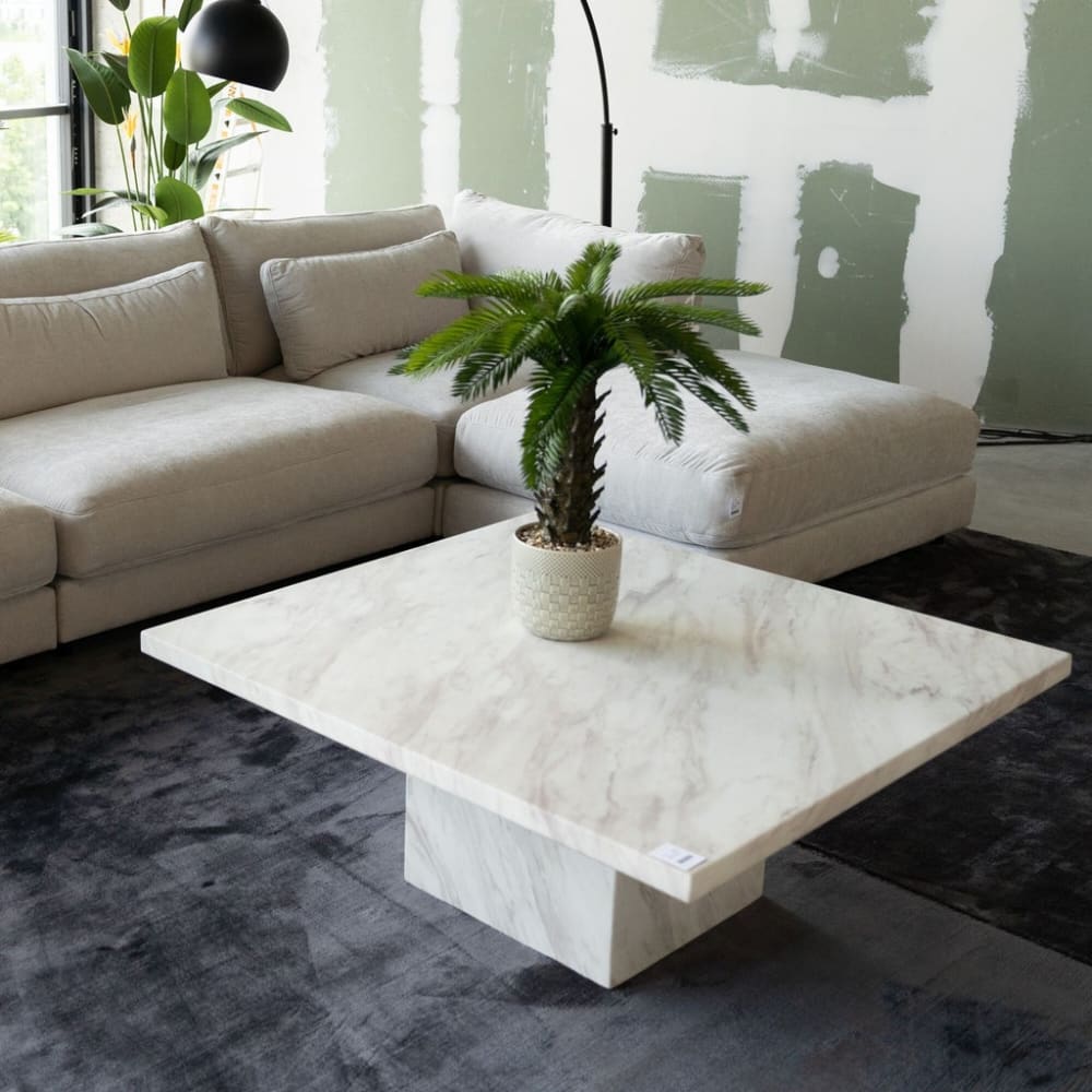 Dieser quadratischer Couchtisch aus dem Naturstein Marmor verkörpert puristisches Design und fügt sich nahtlos in moderne, minimalistische Wohnräume ein. Seine klare Linienführung und dezente Eleganz machen ihn zum perfekten Begleiter für skandinavische oder zeitgenössische Interieurs. Ideal als stilvolles Herzstück eines Wohnzimmers, bringt er Helligkeit und zeitlose Schönheit in jede Einrichtung.