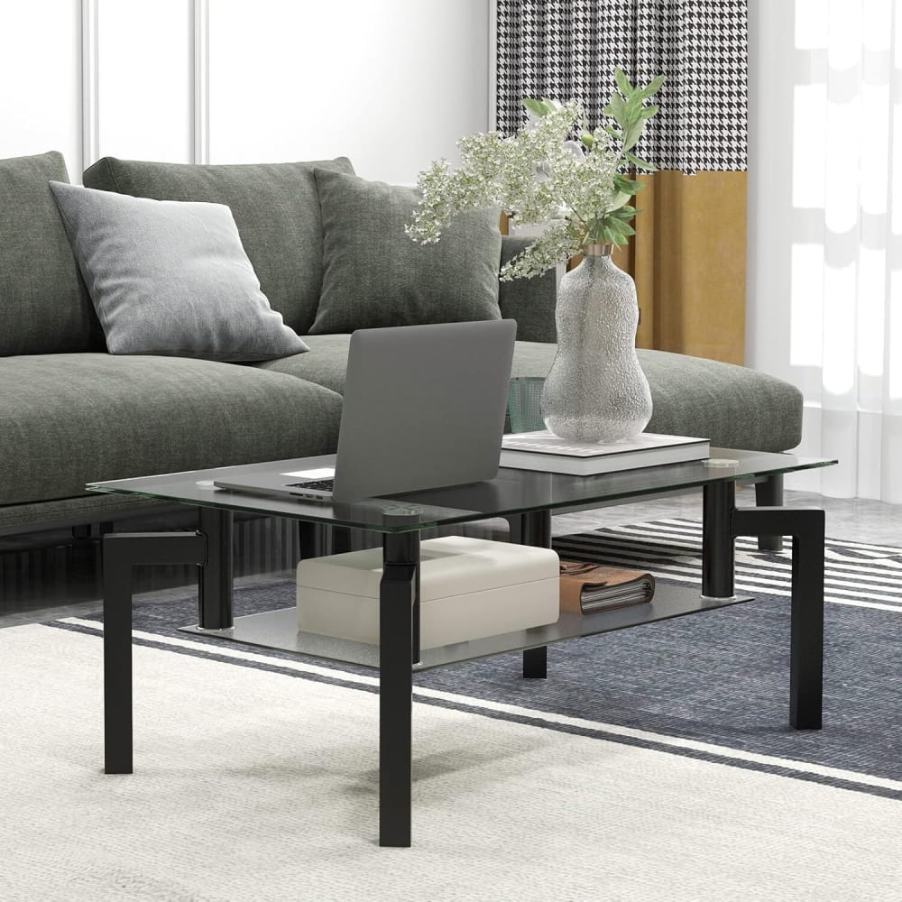 Couchtisch ?Glas ?100 x 60 x 43 cm, ?Schwarz von Giantex