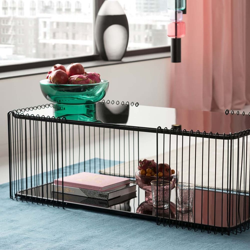 Couchtisch mit Ablage aus Glas und Stahl, schwarz von Kare Design