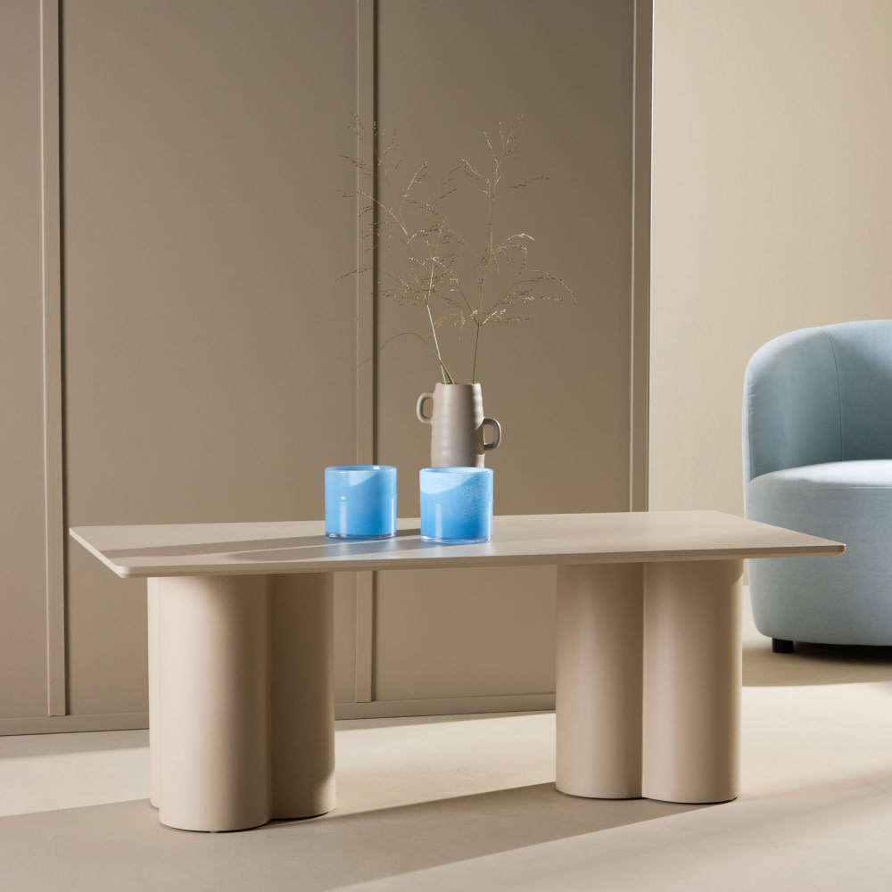 Der Couchtisch Olivia in Beige ist ein eleganter und moderner Tisch, der Funktionalität mit stilvollem Design verbindet. Die rechteckige Tischplatte steht auf drei robusten zylindrischen Beinen, die für eine leichte und stilvolle Optik sorgen. Der Couchtisch Olivia eignet sich sowohl für moderne als auch minimalistische Wohnzimmer, wo er sowohl als praktisches Möbelstück als auch als dekoratives Element fungiert. Der Tisch besteht aus einem langlebigen Material, das dem täglichen Gebrauch standhält und sich problemlos in verschiedene Einrichtungsstile integrieren lässt.