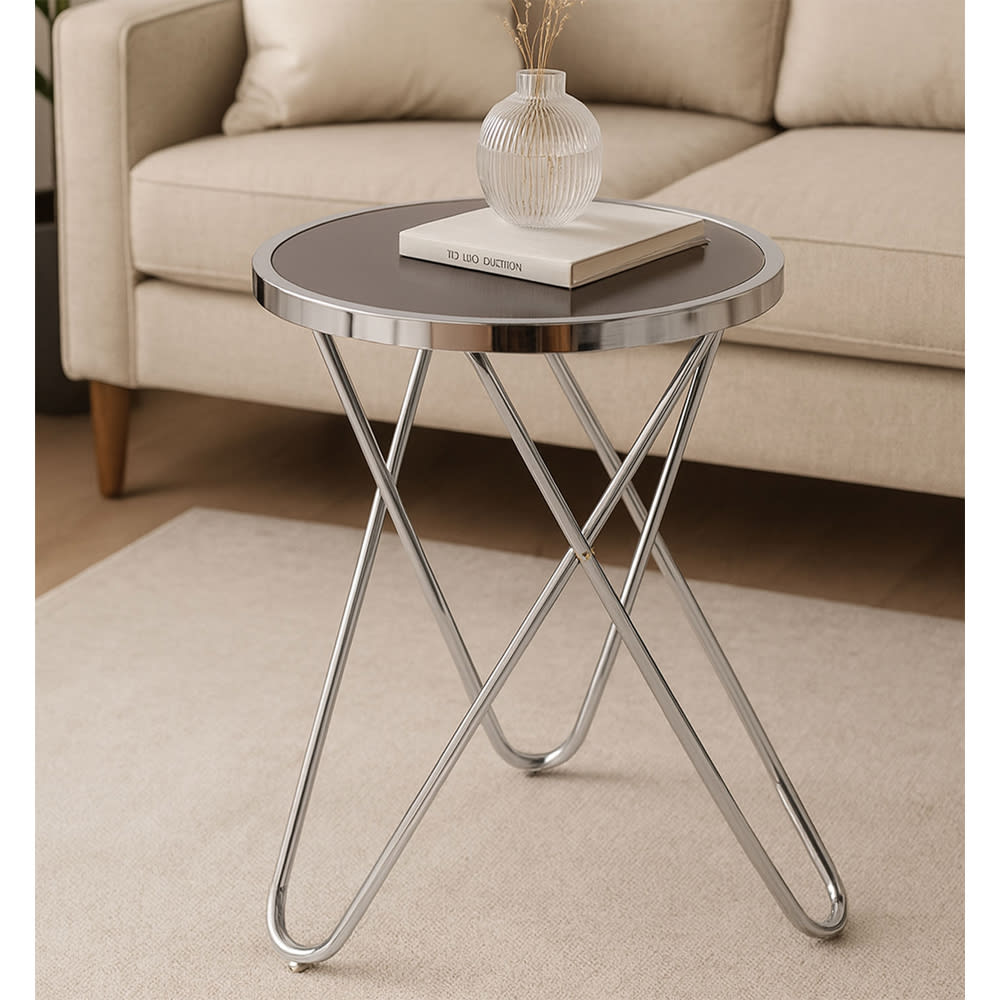 Couchtisch rund aus gehärtetem Glas & Metall, 45x45x50cm, grau/schwarz von Feldmann-Wohnen