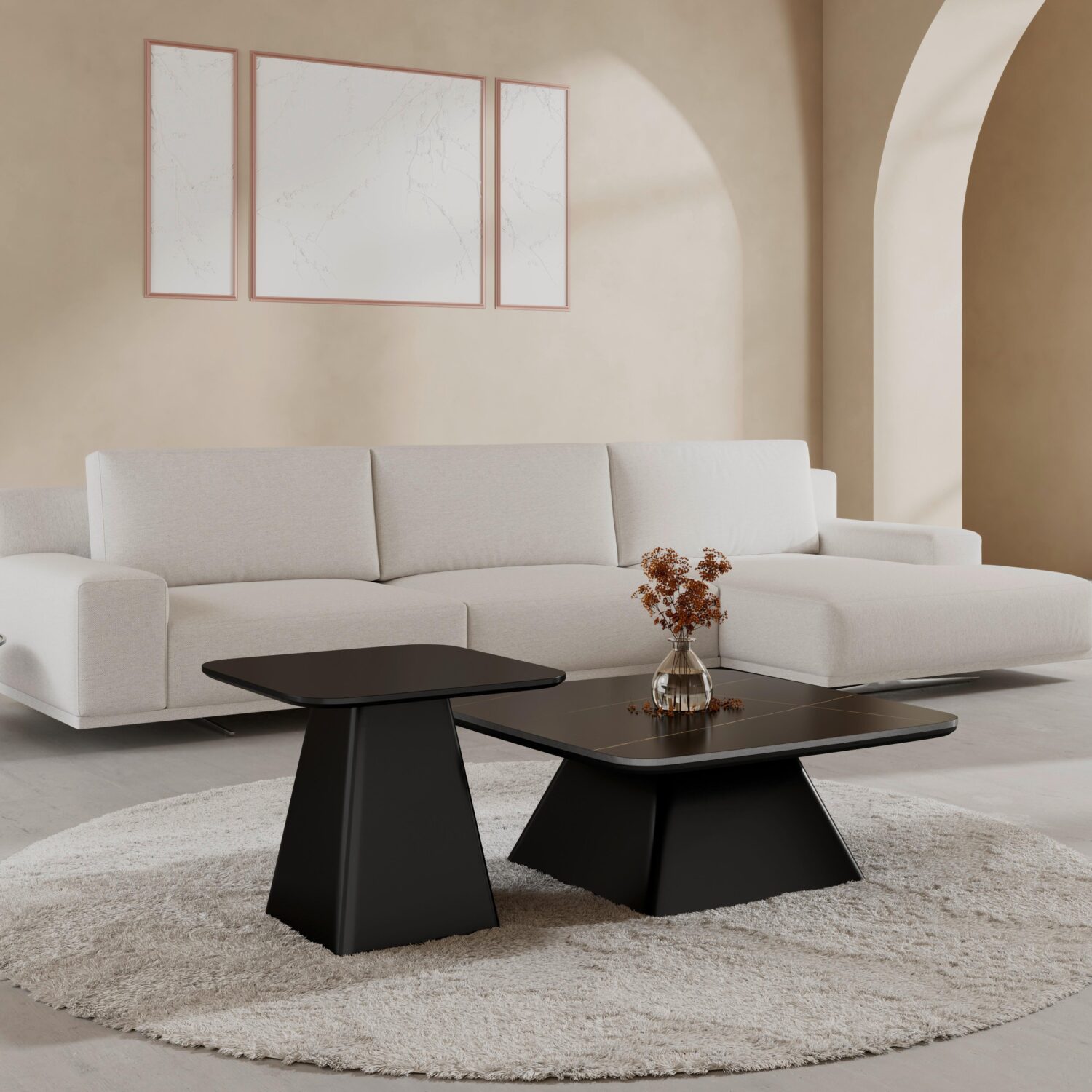 Couchtisch Thiago Schwarz 2-er Set MDF/Stein