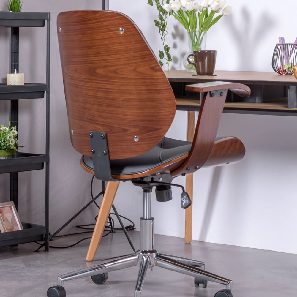 Designer-Bürostuhl mit dunklem Walnussholz, schwarz von Nest dream