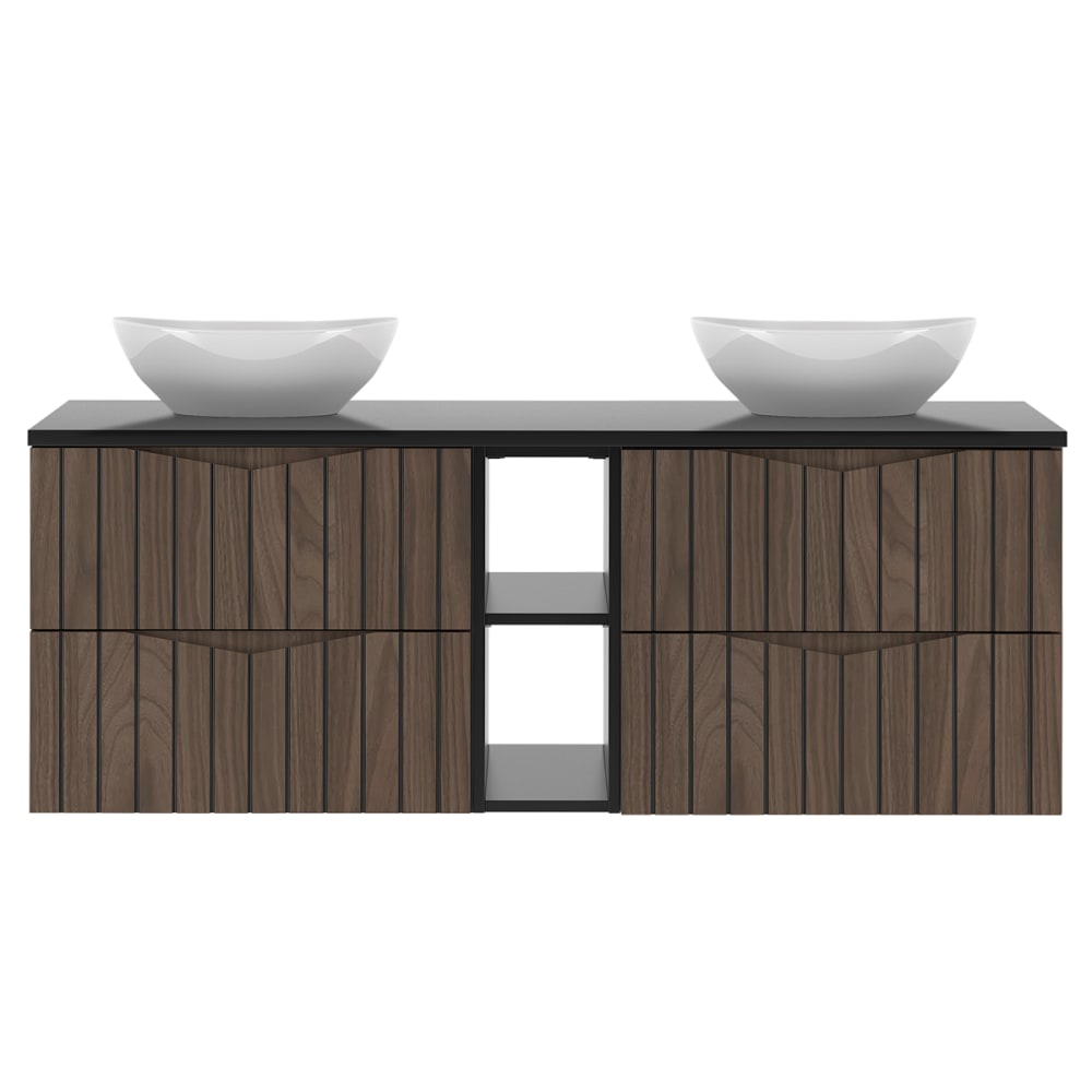 Doppelwaschtisch 140cm 2 Nischen Siena Holz und SchwarzKollektion :: Siena Europäische Herstellung Materialien : Front aus 18 mm MDF-PlattenKorpus aus 16 mm LaminatplattenWaschtisch aus 22 mm MDF-Platten und PVC-FinishsFSC-zertifiziertes Holz aus nachhaltiger ForstwirtschaftKeramikwaschbecken Farbe : Holz in Walnussoptik und schwarzer Waschtisch Die Farbe auf dem Foto kann je nach den Einstellungen Ihres Bildschirms (Kontrast, Helligkeit) variieren. Eigenschaften: Hängeschrank4 Schubladen2 NischenGeräuscharmes SchließsystemInklusive WaschbeckenAbflussdurchmesser: 45 mmInklusive WaschtischWandbefestigungen: Schrauben und Dübel inklusiveEs wird jedoch empfohlen, Ihre Befestigungen an Ihren Untergrund anzupassen. Weitere Informationen : Spiegel nicht inbegriffenArmaturen nicht inbegriffenFreier Auslauf nicht inbegriffenSiphon nicht inbegriffenWaschtisch nicht gebohrt Gewicht : Waschtischunterschrank: 51 kgWaschbecken: 6 kg Abmessungen : Waschtischunterschrank: 140,6 x 46,5 x 52,2 cmWaschbecken: 40,5 x 33,7 x 13,5 cm Die angegebenen Maße können um einige Millimeter abweichen Installationshinweise: Dieses Möbelstück ist für die Installation mit Wasserzuführungen von der Wand aus gedacht. Pflegetipps: Für ausreichende Belüftung und eine funktionierende Lüftungsanlage sorgenKanten, die Wasser ausgesetzt sind, mit Silikon versiegelnDas Innere von Möbeln nicht der Feuchtigkeit (Wasser, Wasserdampf) aussetzen Sicherheitshinweise: Für gute Belüftung im Badezimmer sorgenDas Möbelstück sicher an der Wand befestigenDie in den Anleitungen angegebenen empfohlenen Höchstlasten beachten Verpackung : Produkt wird zur Montage geliefert, inkl. Anleitung Produktgarantie: 24 Monate Gesamtanzahl der Kartons : 6 Gewicht und Abmessungen der Kartons: 17 kg / 67 x 48 x 14 cm17 kg / 67 x 48 x 14 cm7,5 kg / 141 x 51 x 3 cm9 kg / 61 x 51 x 9 cm6 kg / 56 x 43 x 24 cm6 kg / 56 x 43 x 24 cm Gesetzlicher Vertreter: NAPKINS, 30/34 avenue Henri Matisse, 06200 Nizza, Frankreich