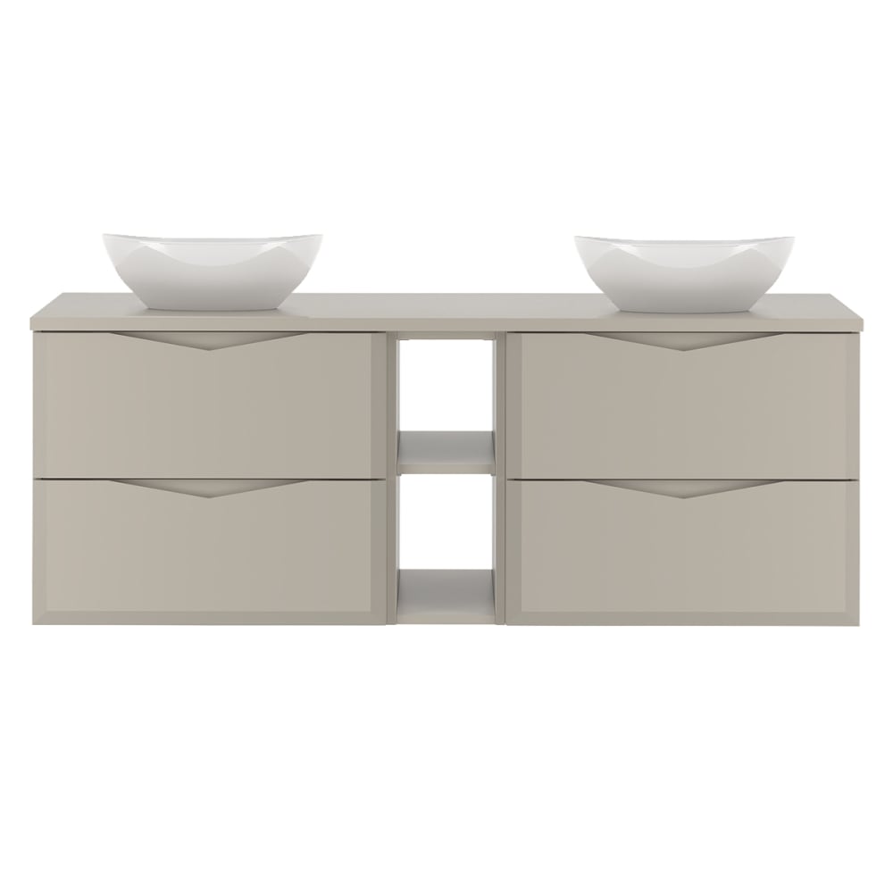 Doppelwaschtisch 140cm 2 Nischen Ellie KaschmirKollektion :: Ellie Europäische Herstellung Materialien : Front aus 18 mm MDF-PlattenKorpus aus 16 mm LaminatplattenWaschtisch aus 22 mm MDF-Platten und PVC-FinishsFSC-zertifiziertes Holz aus nachhaltiger ForstwirtschaftKeramikwaschbecken Farbe : Kaschmir Die Farbe auf dem Foto kann je nach den Einstellungen Ihres Bildschirms (Kontrast, Helligkeit) variieren. Eigenschaften: Hängeschrank4 Schubladen2 NischenGeräuscharmes SchließsystemInklusive WaschbeckenAbflussdurchmesser: 45 mmInklusive WaschtischWandbefestigungen: Schrauben und Dübel inklusiveEs wird jedoch empfohlen, Ihre Befestigungen an Ihren Untergrund anzupassen. Weitere Informationen : Spiegel nicht inbegriffenArmaturen nicht inbegriffenFreier Auslauf nicht inbegriffenSiphon nicht inbegriffenWaschtisch nicht gebohrt Gewicht : Waschtischunterschrank: 51 kgWaschbecken: 6 kg Abmessungen : Waschtischunterschrank: 140,6 x 46,5 x 52,2 cmWaschbecken: 40,5 x 33,7 x 13,5 cm Die angegebenen Maße können um einige Millimeter abweichen Installationshinweise: Dieses Möbelstück ist für die Installation mit Wasserzuführungen von der Wand aus gedacht. Pflegetipps: Für ausreichende Belüftung und eine funktionierende Lüftungsanlage sorgenKanten, die Wasser ausgesetzt sind, mit Silikon versiegelnDas Innere von Möbeln nicht der Feuchtigkeit (Wasser, Wasserdampf) aussetzen Sicherheitshinweise: Für gute Belüftung im Badezimmer sorgenDas Möbelstück sicher an der Wand befestigenDie in den Anleitungen angegebenen empfohlenen Höchstlasten beachten Verpackung : Produkt wird zur Montage geliefert, inkl. Anleitung Produktgarantie: 24 Monate Gesamtanzahl der Kartons : 6 Gewicht und Abmessungen der Kartons: 17 kg / 67 x 48 x 14 cm17 kg / 67 x 48 x 14 cm7,5 kg / 141 x 51 x 3 cm9 kg / 61 x 51 x 9 cm6 kg / 56 x 43 x 24 cm6 kg / 56 x 43 x 24 cm Gesetzlicher Vertreter: NAPKINS, 30/34 avenue Henri Matisse, 06200 Nizza, Frankreich