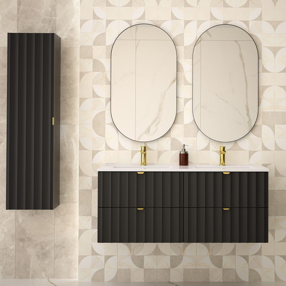 Doppelwaschtisch und Hängesäule 4 Schubladen, Schwarz, 120cm von Petits meubles