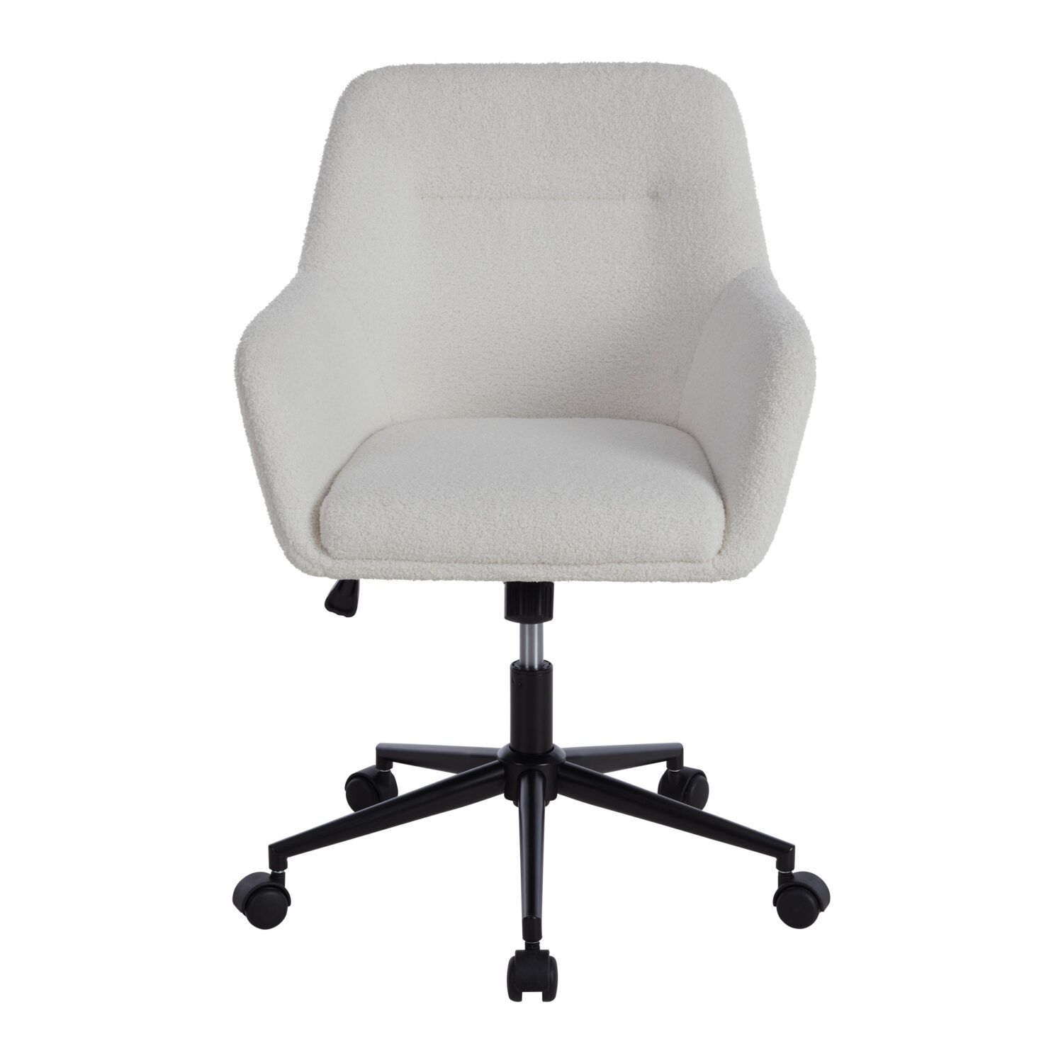 Entdecken Sie unseren vielseitigen Drehstuhl – der perfekte Begleiter für Ihr Büro. Mit einer Maße von ca. 62 x 85,5-93,5 x 57 cm (B x H x T) passt er in jedes Arbeitsumfeld. Der Stuhl verfügt über eine drehbare Sitzfläche und besteht aus hochwertigem, pulverbeschichtetem Gusseisen. Die Sitzfläche ist mit strapazierfähigem Teddystoff aus synthetischer Polyesterfaser bezogen. Genießen Sie maximalen Sitzkomfort mit verstellbarer Höhe und drehbarer Sitzfläche. Die Rückenlehne, Kontrastnähte und Armlehnen in Weiß verleihen dem Stuhl zeitlose Eleganz. Mit einer Belastbarkeit von 140 kg und einfachen Montageanweisungen ist er die perfekte Wahl. Bringen Sie Stil und Funktionalität in Ihr Büro mit diesem hochwertigen Drehstuhl.
