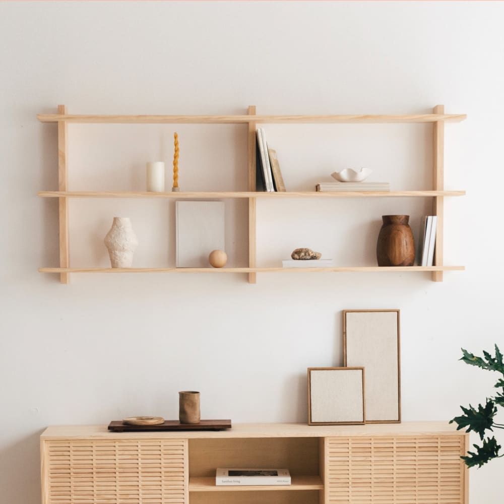 Dreifaches Wandregal in Kiefer natur 170 cm Unlackiert von Naan Furniture