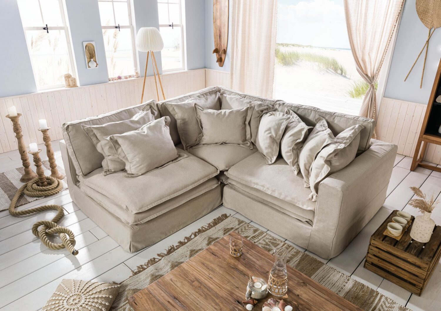 Ecksofa 238x234x90 beige SYLT von Massivmoebel24 DE