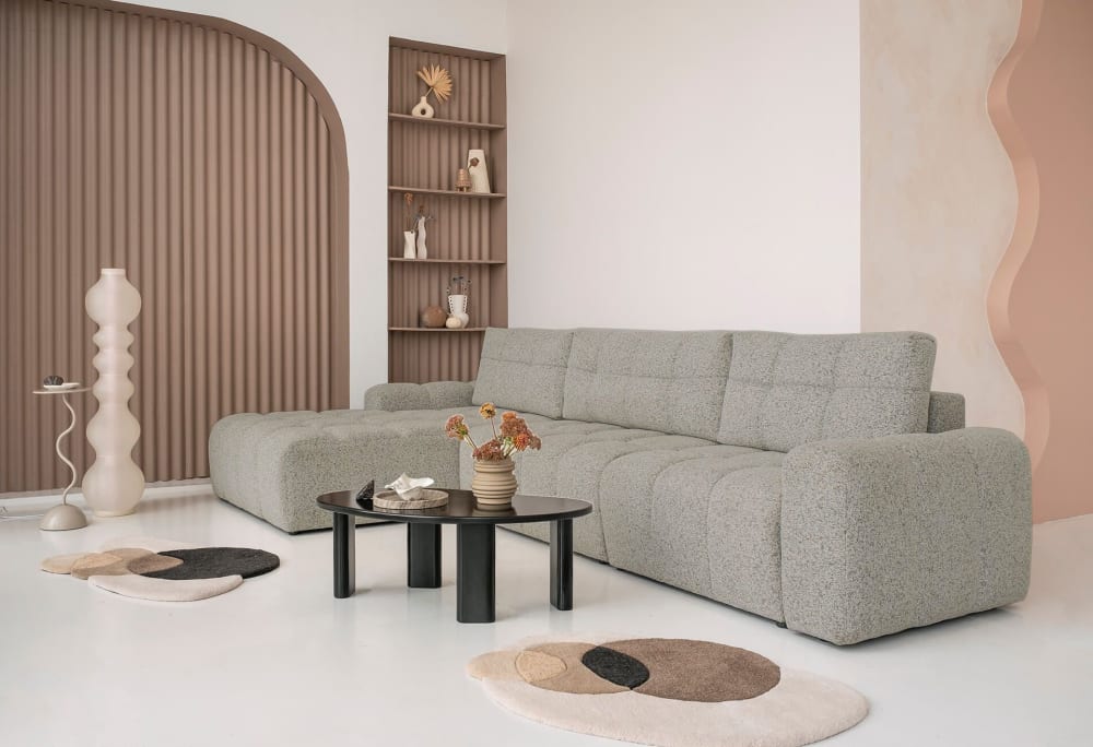 Die abgerundete Form der 3d-Elemente (Bubble-Effekt) und die tiefe Steppung sind die Details, die Lulu seinen einzigartigen Charakter verleihen. Dieses erstaunliche modulare Ecksofa wird Ihr Wohnzimmer wie nie zuvor schmücken. Der dicke, strukturierte Stoff ist ein echter Blickfang und seine Weichheit verleiht jeder Einrichtung einen gemütlichen Touch!