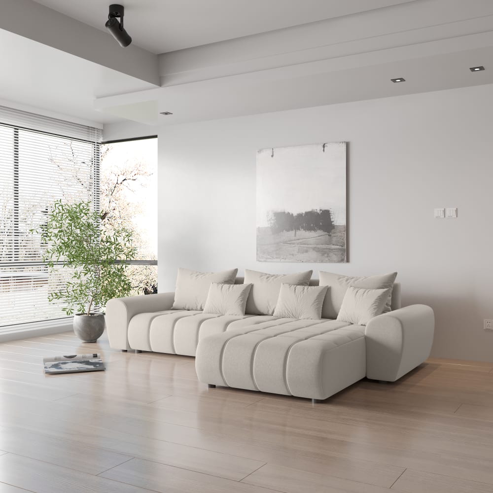 Ecksofa aus Velvet 4-Sitzer, Cremeweiß von Fedve
