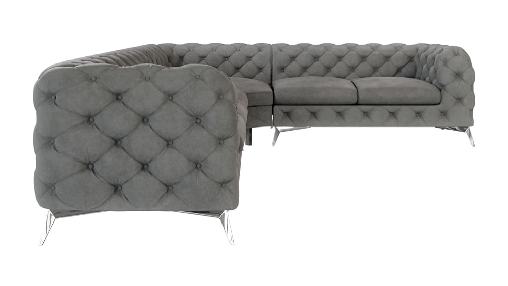 Ecksofa Chesterfield aus Samt mit silbernen Metall-Füßen, Grau von S-Style