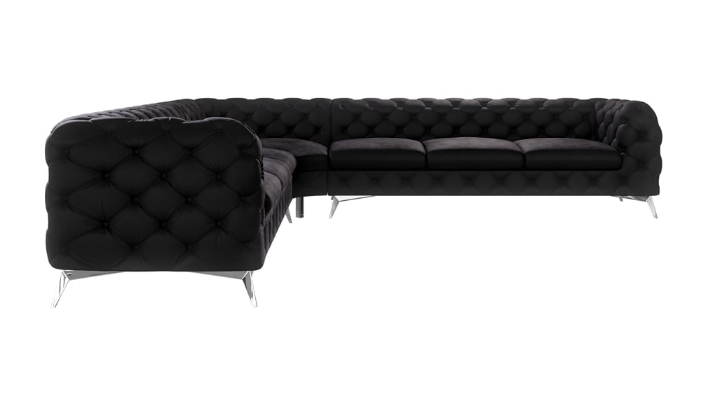 Ecksofa Chesterfield aus Samt mit silbernen Metall-Füßen, Schwarz von S-Style