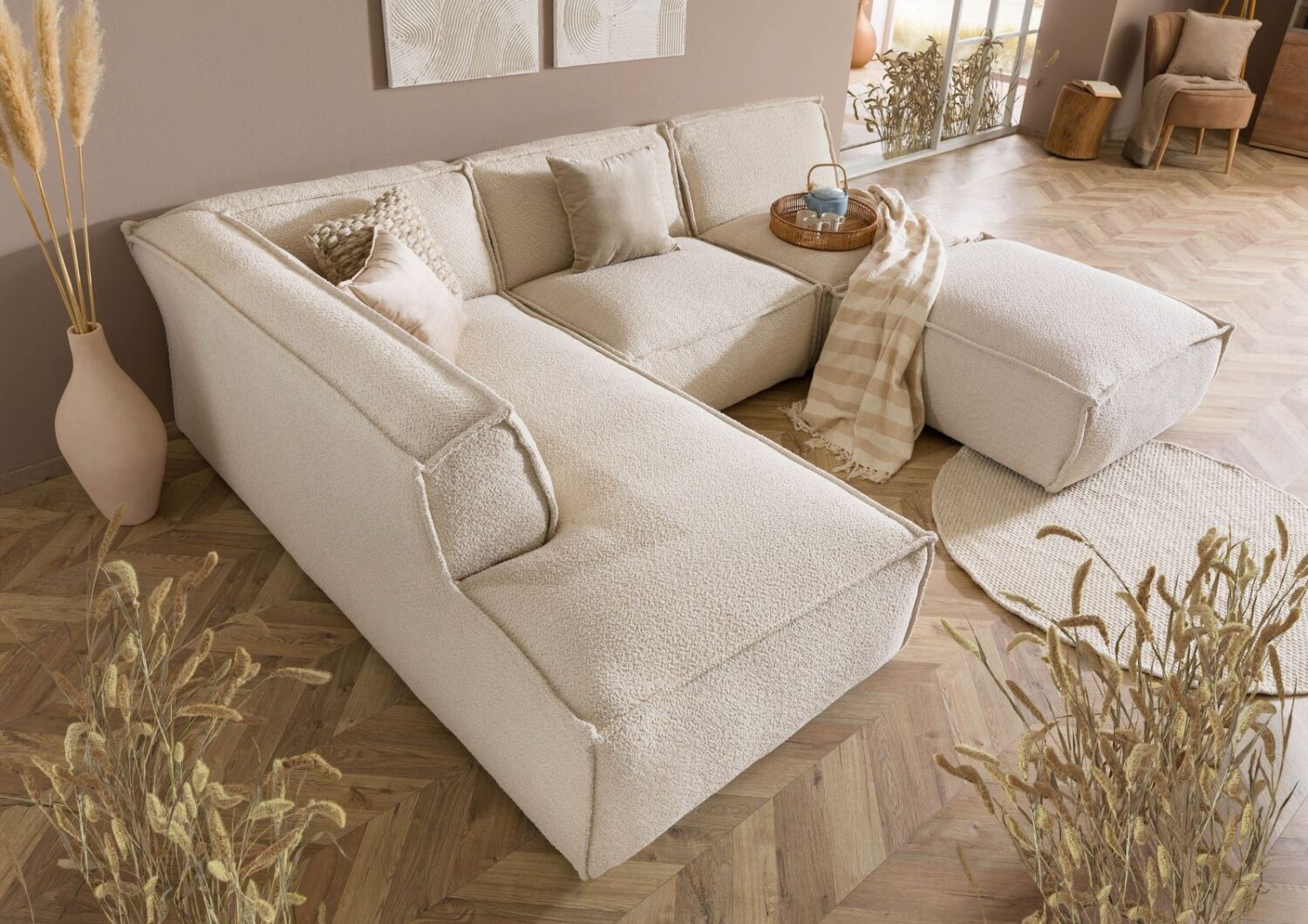 Ecksofa inkl. Hocker 285x220x79 Polyester beige RAVENNA von Massivmoebel24 DE