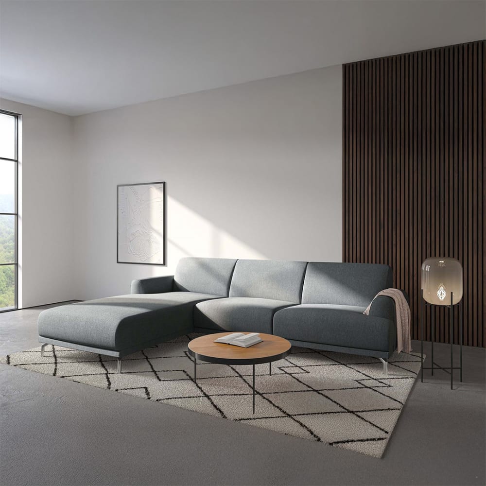 Ein Sofa als Mittelpunkt des Wohnzimmers ist stets ein Blickfang. Es sollte darauf geachtet werden, dass sein Design mit dem gesamten Interieur harmoniert und jeder auf dem bequemen Sitz Platz findet. Das PUZO Sofa, eine Kombination aus hochwertigen Stoffen und formschönen Metallbeinen, besticht durch seine Vielseitigkeit und stilvolle Eleganz. Es lässt sich gut mit anderen Möbeln kombinieren und verleiht dem Interieur einen raffinierten Chic.