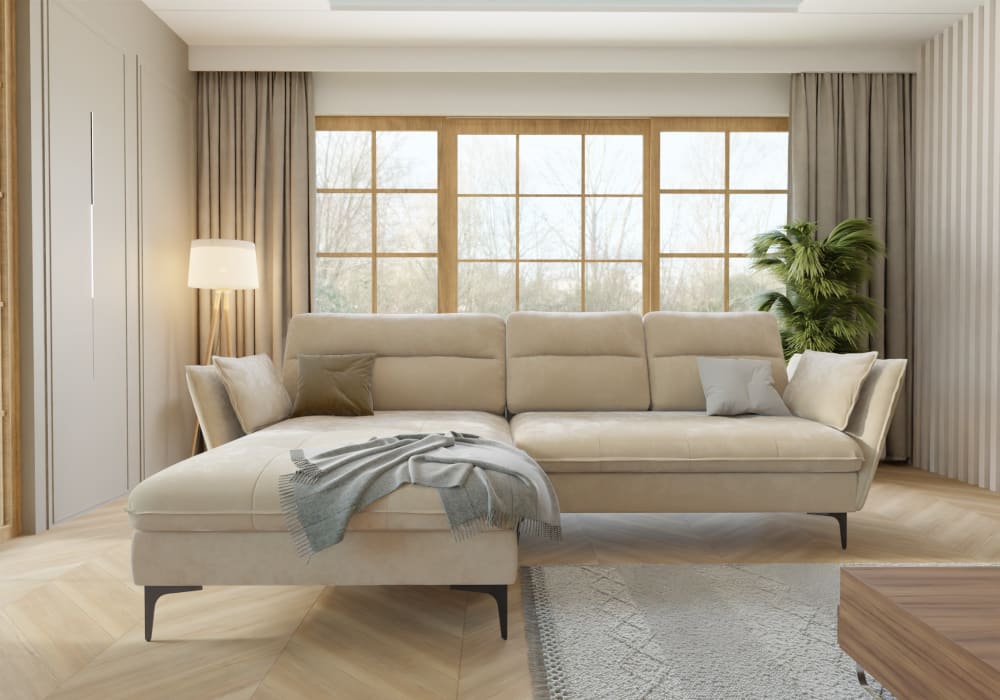 Mit seinen klaren Linien und dem modernen Design fügt sich das Ursel Ecksofa mit Bettfunktion und Bettkasten nahtlos in verschiedene Einrichtungsstile ein, von zeitgenössisch bis klassisch. Egal, ob es in einem geräumigen Wohnzimmer oder einem gemütlichen Zimmer platziert wird, dieses Sofa wird zum Mittelpunkt des Raumes und lädt Sie und Ihre Gäste ein, sich in Komfort und Stil zu entspannen.