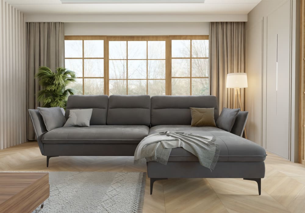 Mit seinen klaren Linien und dem modernen Design fügt sich das Ursel Ecksofa mit Bettfunktion und Bettkasten nahtlos in verschiedene Einrichtungsstile ein, von zeitgenössisch bis klassisch. Egal, ob es in einem geräumigen Wohnzimmer oder einem gemütlichen Zimmer platziert wird, dieses Sofa wird zum Mittelpunkt des Raumes und lädt Sie und Ihre Gäste ein, sich in Komfort und Stil zu entspannen.