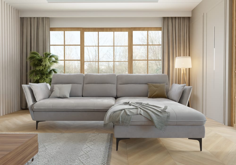 Mit seinen klaren Linien und dem modernen Design fügt sich das Ursel Ecksofa mit Bettfunktion und Bettkasten nahtlos in verschiedene Einrichtungsstile ein, von zeitgenössisch bis klassisch. Egal, ob es in einem geräumigen Wohnzimmer oder einem gemütlichen Zimmer platziert wird, dieses Sofa wird zum Mittelpunkt des Raumes und lädt Sie und Ihre Gäste ein, sich in Komfort und Stil zu entspannen.