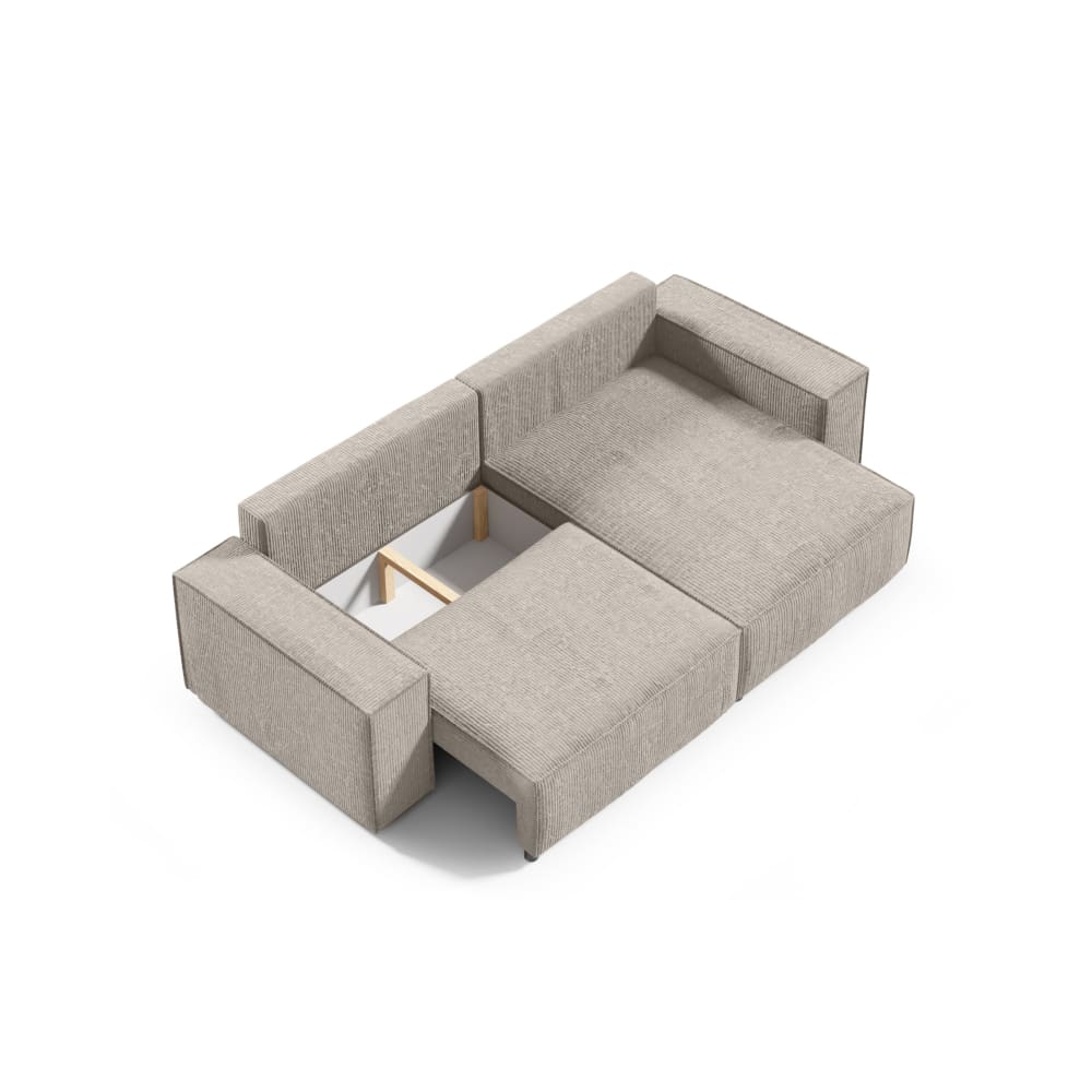 Das Ecksofa ist mit einer praktischen und äußerst einfach zu bedienenden Schlaffunktion ausgestattet, dank der es schnell und effizient in ein bequemes Bett mit glatter Oberfläche verwandeln kann. Das Ecksofa ist universell, es kann links- oder rechtshändig sein