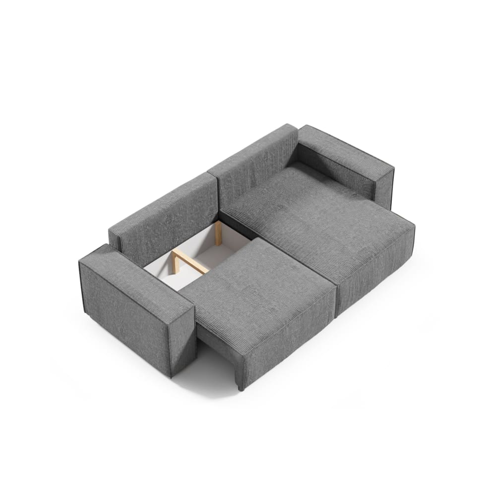 Das Ecksofa ist mit einer praktischen und äußerst einfach zu bedienenden Schlaffunktion ausgestattet, dank der es schnell und effizient in ein bequemes Bett mit glatter Oberfläche verwandeln kann. Das Ecksofa ist universell, es kann links- oder rechtshändig sein