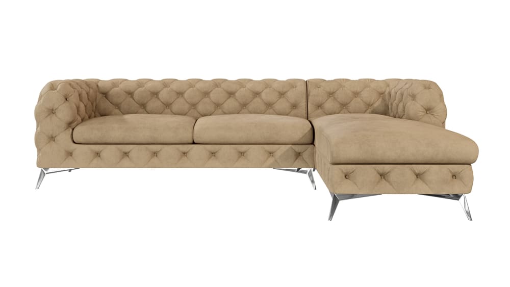 Ecksofa mit Ottomane Chesterfield aus Samt, Beige von S-Style