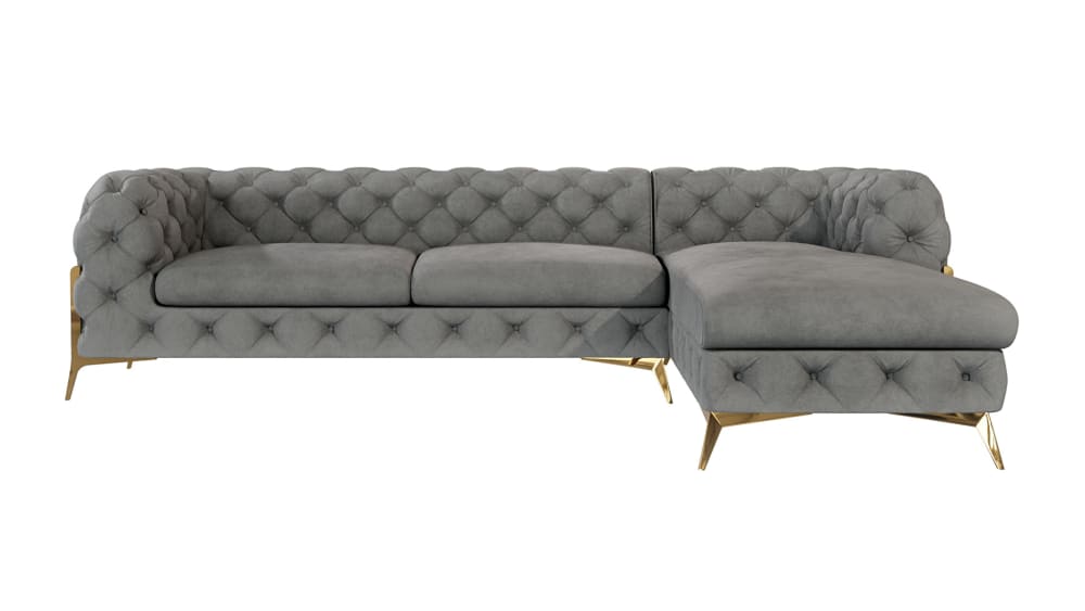 Ecksofa mit Ottomane Chesterfield aus Samt, Grau von S-Style Möbel