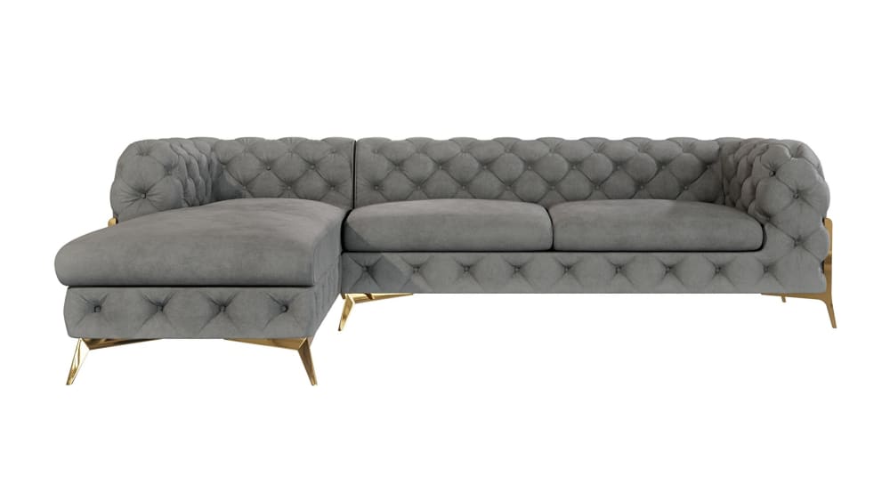 Ecksofa mit Ottomane Chesterfield aus Samt, Grau von S-Style Möbel