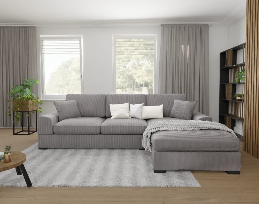 Ecksofa mit Schlaffunktion aus Cord-Stoff, Hellgrau von S-Style Möbel
