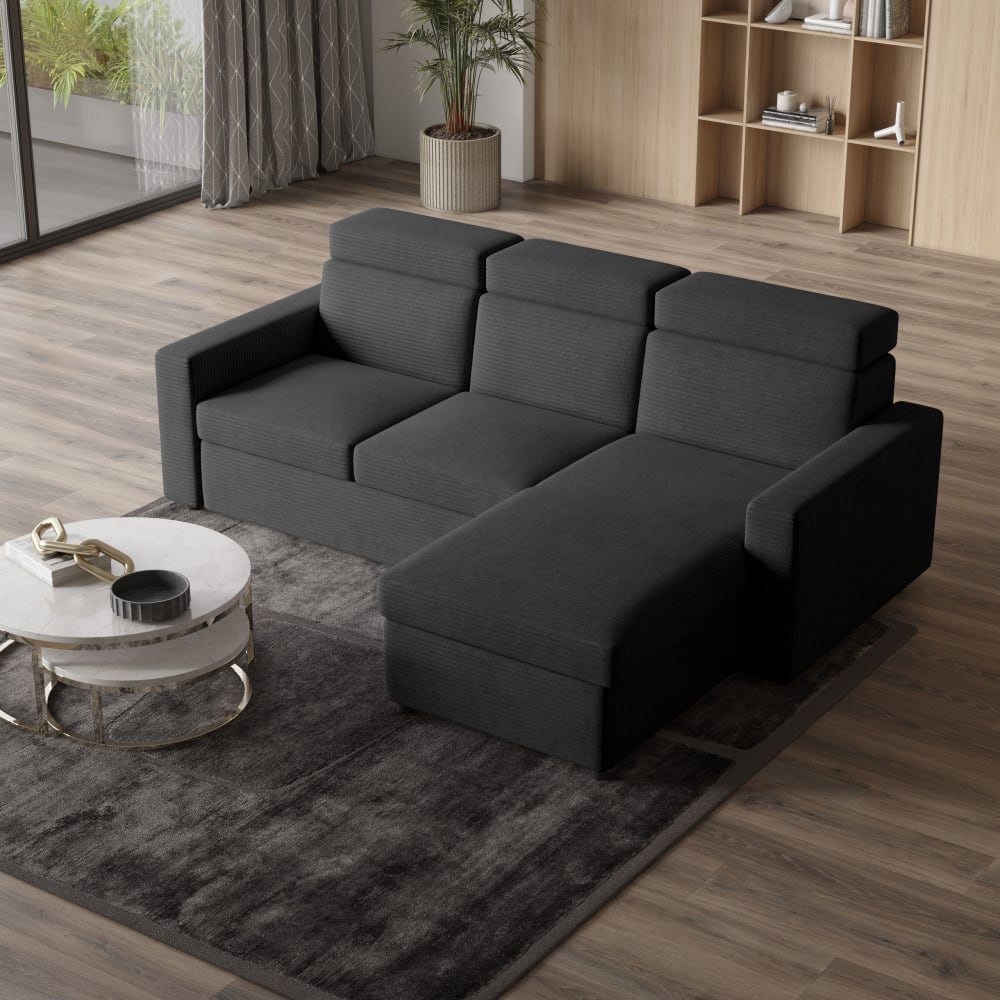 Ecksofa mit Schlaffunktion aus Kordstoff, Graphitfarben von Masseno