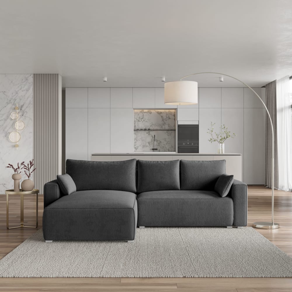 Ecksofa mit Schlaffunktion aus Kordstoff, Graphitfarben von Masseno